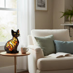 A Shiny Cat lámpa tökéletes kiegészítője mindazoknak, akik fel szeretnék dobni otthonukat, és vidám, egyedi hangulatot szeretnének teremteni. Élénk ólomüveg színeivel dizájnja magára vonzza a tekintetet, és bármely sarkot elegánssá és hangulatos hellyé varázsol. A lámpa lágy és nyugtató fényt bocsát ki, amely ideális a kikapcsolódáshoz. Kompakt méreteinek köszönhetően alkalmas éjjeliszekrényekre, fiókos szekrényekre vagy bármilyen más helyre, amelyet meg kell világítani.