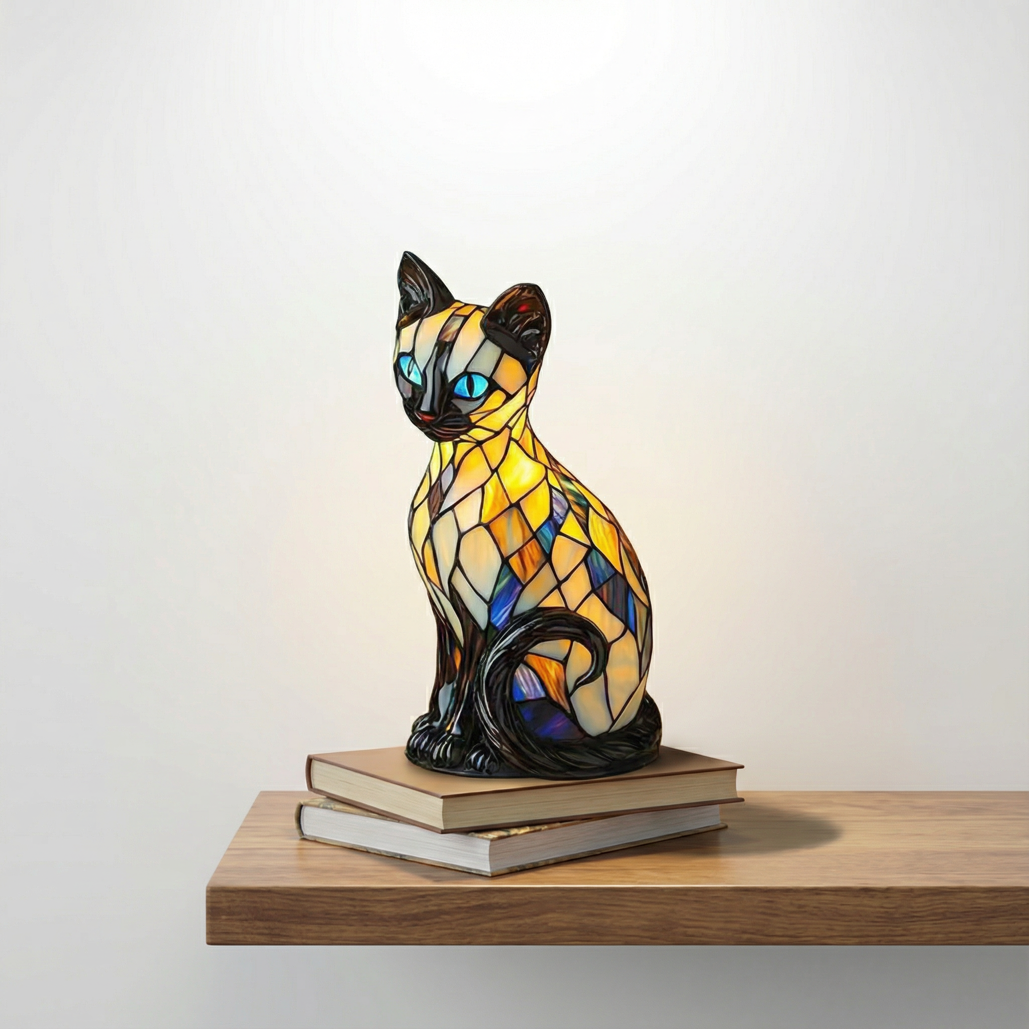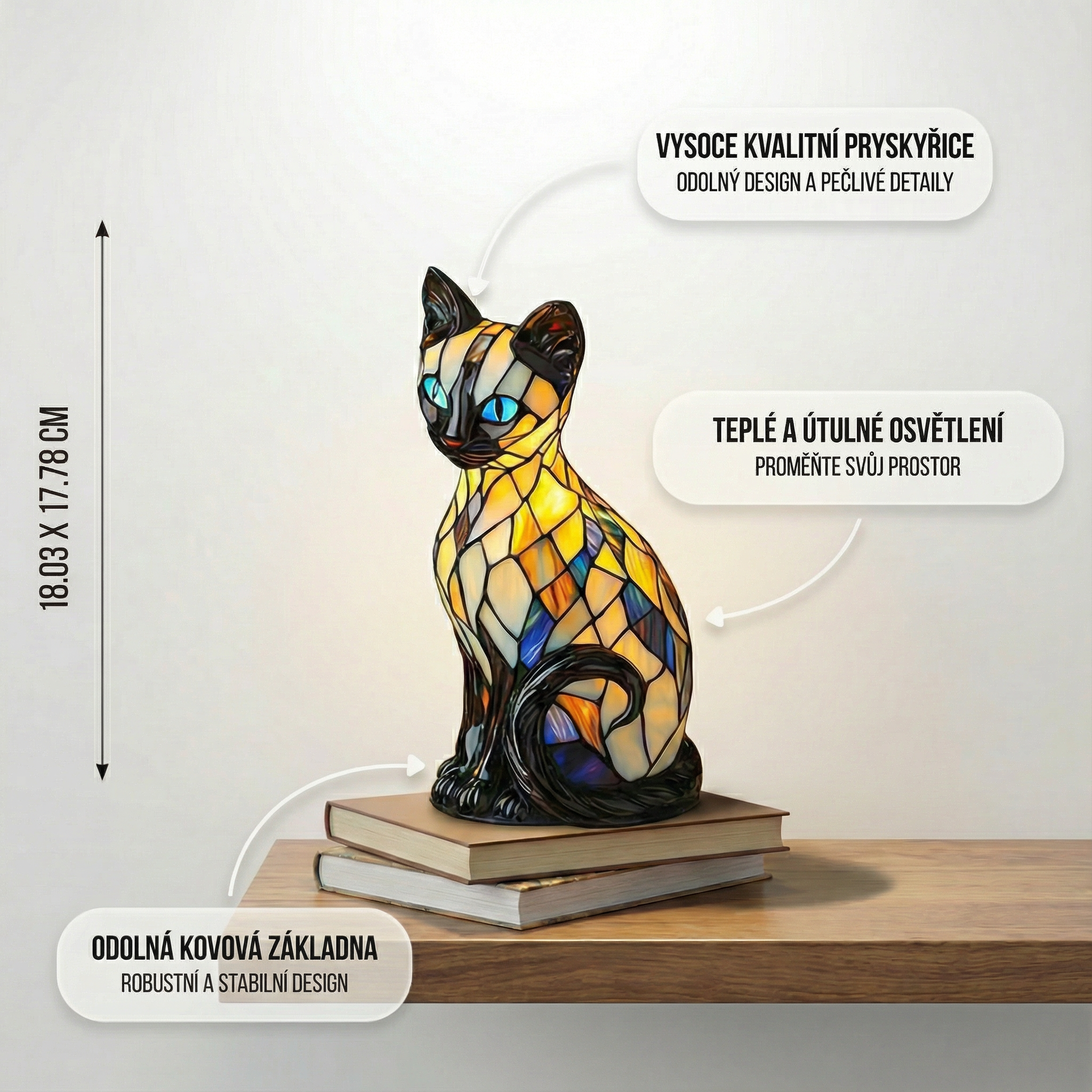 A Mystic Cat lámpa tökéletes kiegészítője mindazoknak, akik fel szeretnék dobni otthonukat. Élénk ólomüveg színeivel vidám, merész és egyedi hangulatot teremt. A lámpa lágy és nyugtató fényt bocsát ki, amely bármely sarkot elegánssá és hangulatos hellyé varázsol. Kompakt méretei ideálissá teszik éjjeliszekrényre, komódra vagy bármilyen más helyre, amelyet fel kell dobni.