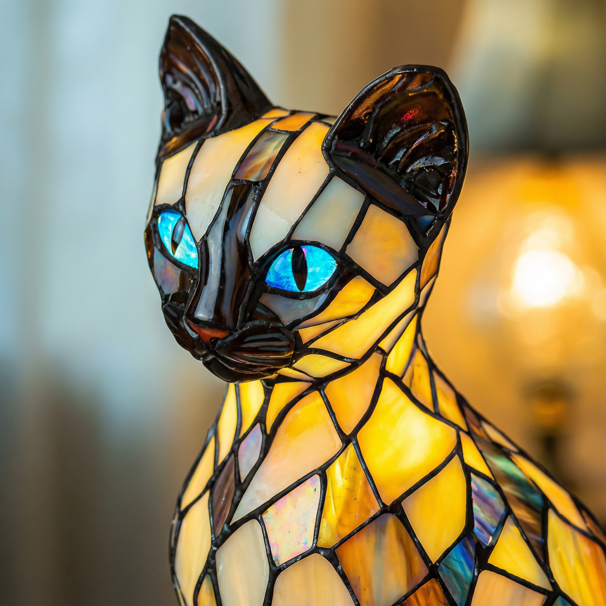 Misztikus macska - ólomüveg lámpa