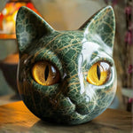- Pronikavý design ve tvaru kočičího oka - Přehnaně velké mandlové oči jsou středobodem této sochy, která okamžitě přitahuje pozornost svou intenzitou. Hloubka kolem očních důlků dodává kočičí hlavě téměř realistický vzhled. Perfektně balancuje mezi tajemstvím a elegancí