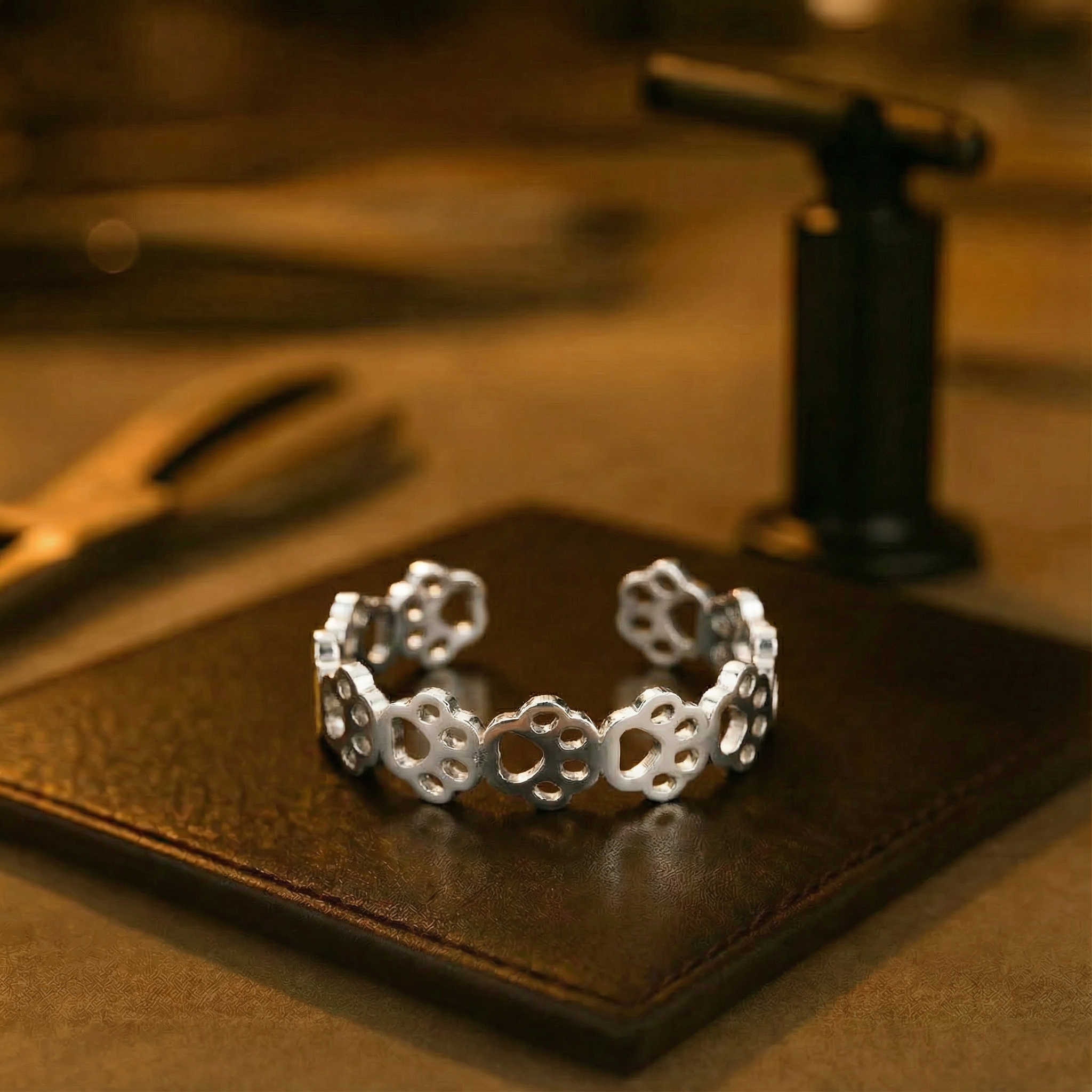 Ez az aranyos , nyitott, mancs alakú, rozsdamentes acélból készült gyűrű tökéletes kiegészítő minden macska- és kutyabarát számára. A finom mancsnyom a szeretetet, a közelséget és a szeretett háziállattal való elválaszthatatlan köteléket szimbolizálja. Nyitott formája lehetővé teszi az egyéni beállítást - ideális mindennapi viseletre.